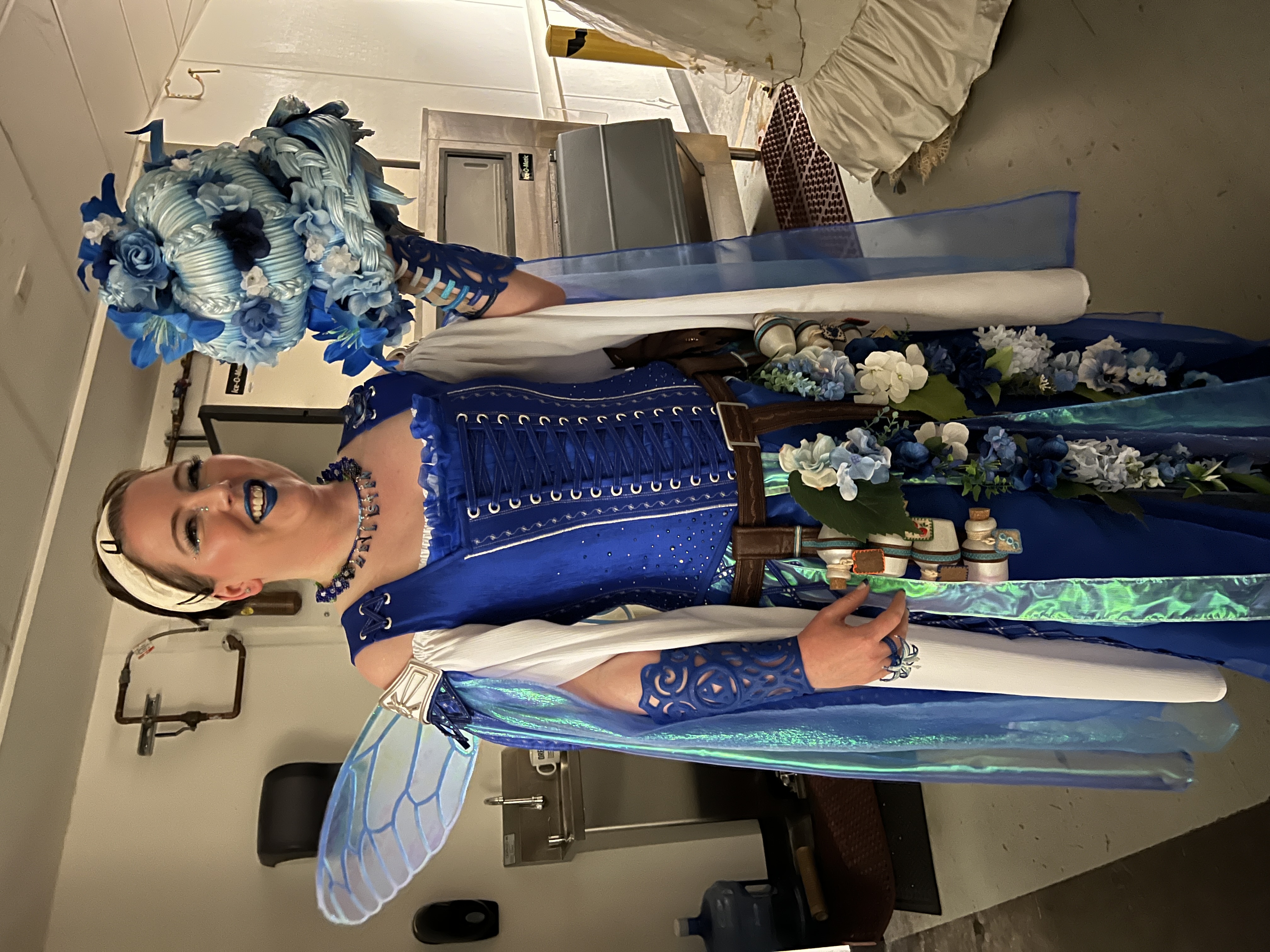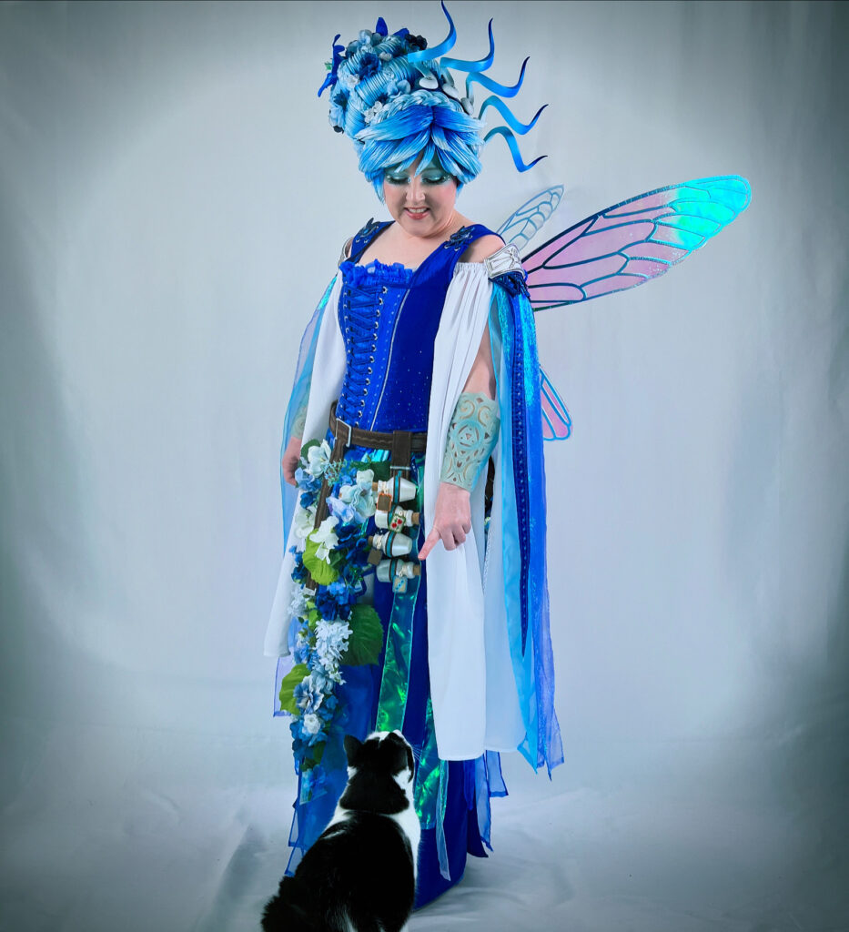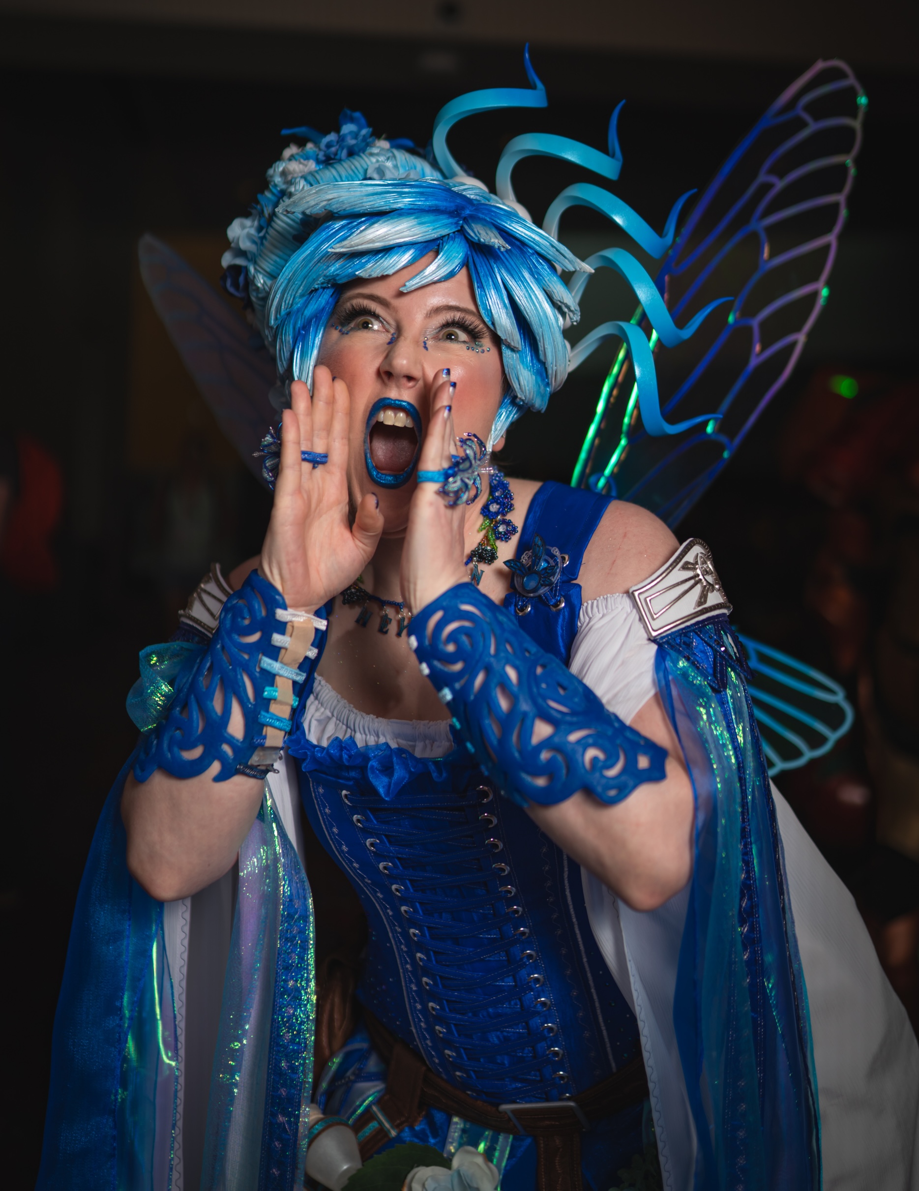 I aimed high on this build, from number of elements to the complexity of the special effects. I wanted (1) a lot of things, (2) each component to work reliably, and (3) it to look good. In the game Ocarina of Time, Navi is just a blue orb with wings who occasionally wails “Hey! Listen!” I kept as many of the on-paper details as I could, the blue ombre palette, the structure of the wings, etc. And for the rest, I had to imagine what this intrepid, adventuring, fairy creature might look like in Great Fairy form.