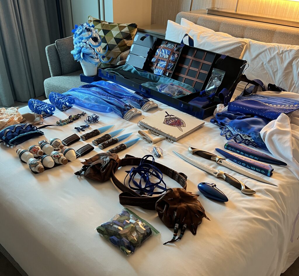 If you’re thirsty for all the details about how I made this cosplay, check out my competition book linked below. I’m a detailed record keeper, so this build book is full of WIP images, explanations, reference art, etc. This is probably my best build book to date, I did a lot of work to make it as pretty as the costume – and I created a pop-out for quick reference, also linked below.