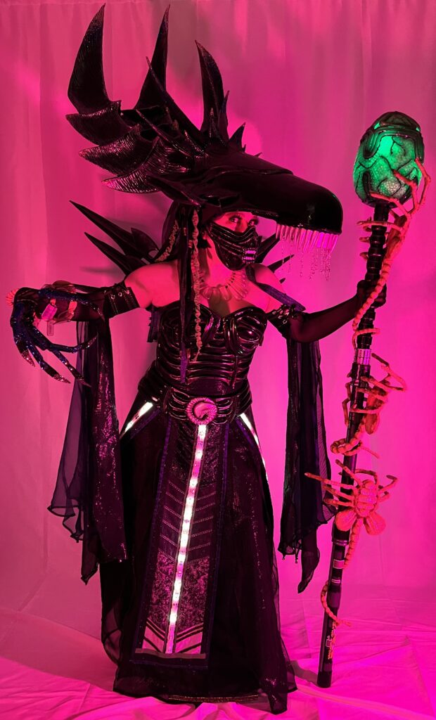 This is a cosplay I made because I love Aliens AND I had a question I wanted to answer: what would the Queen Xenomorph look like if she shared the stage with the other Disney princesses? I’ve never been great about building super screen accurate cosplays and this project, in particular, let me wander pretty far from the marked trail.